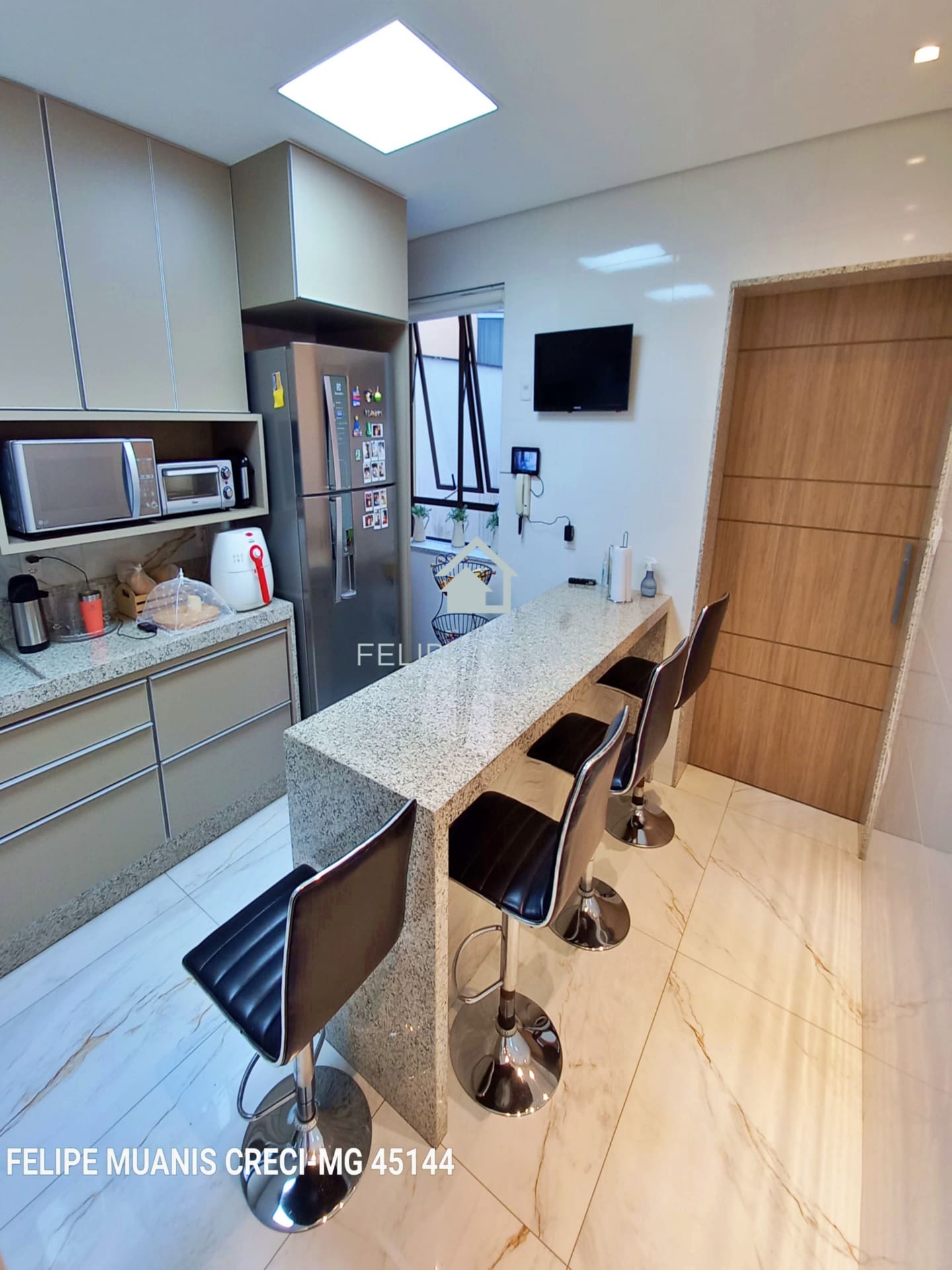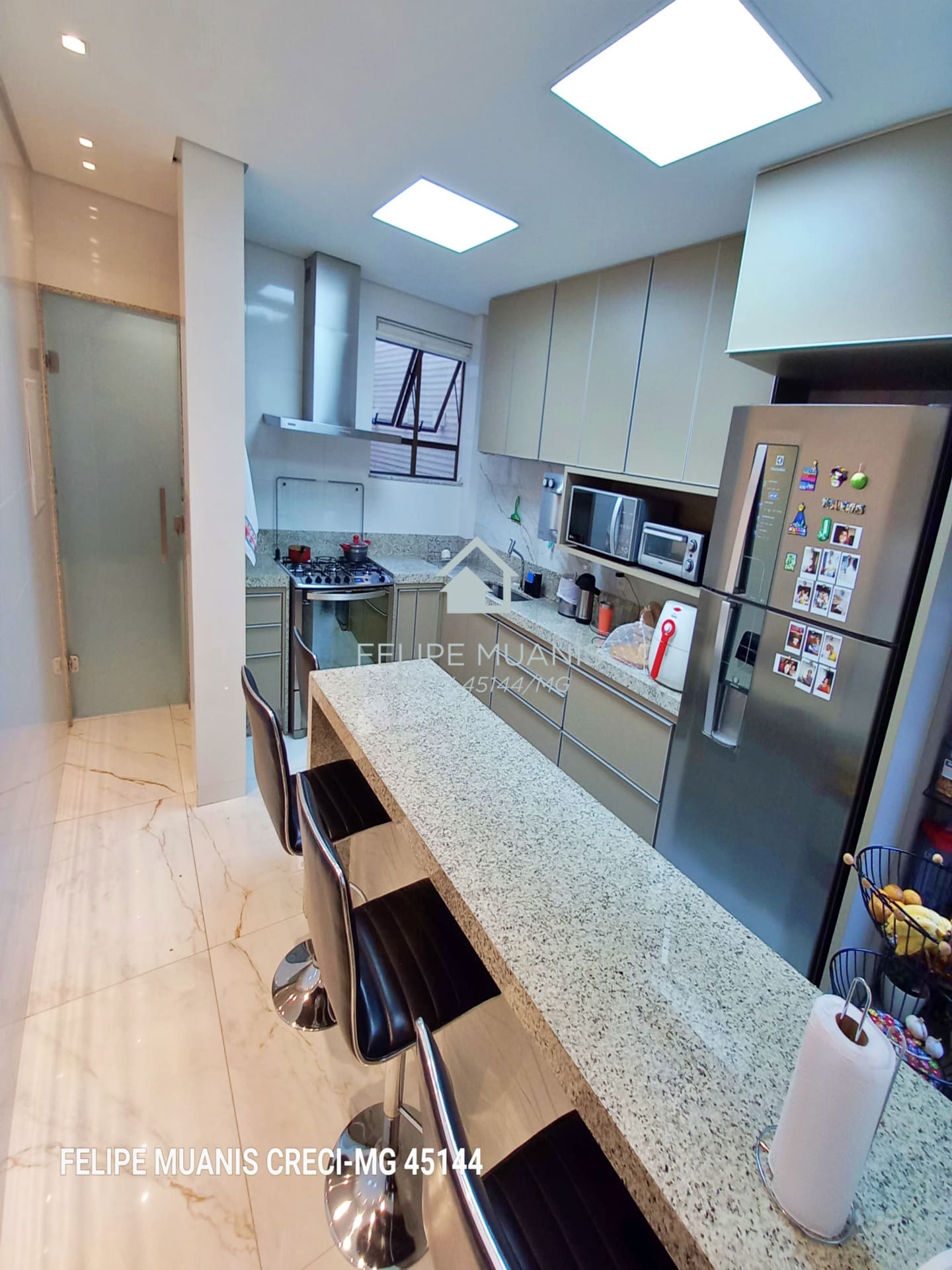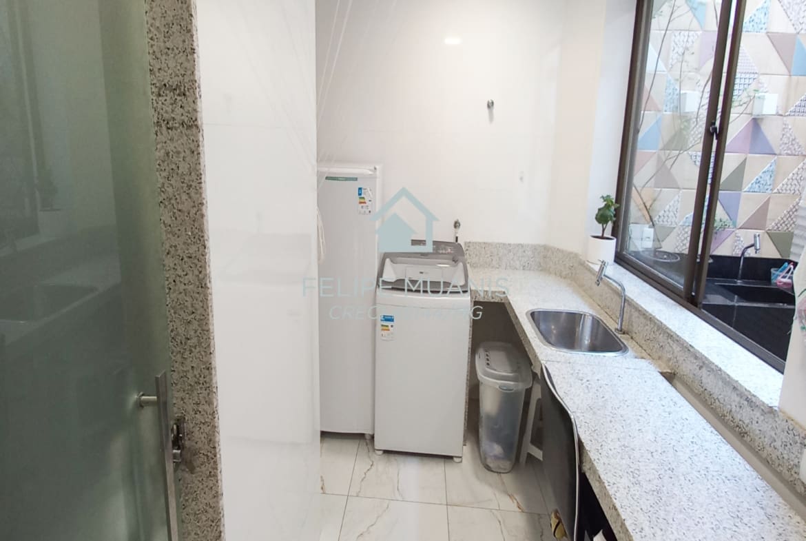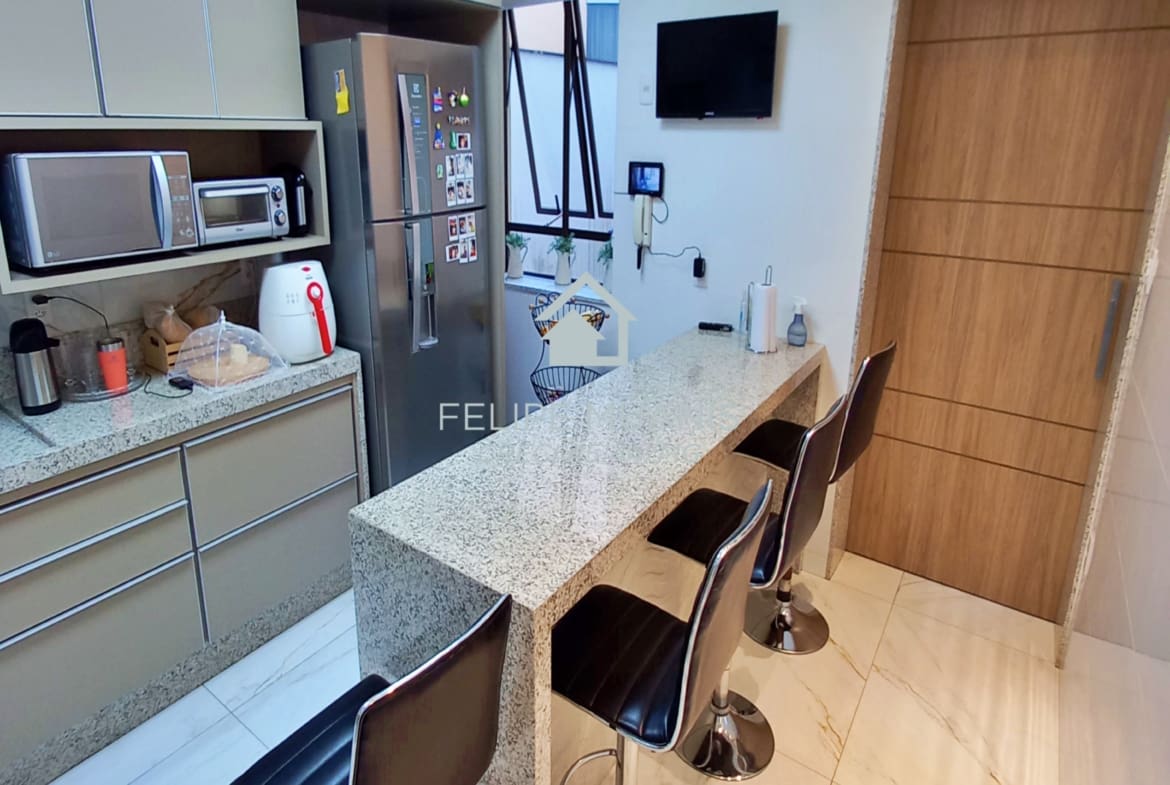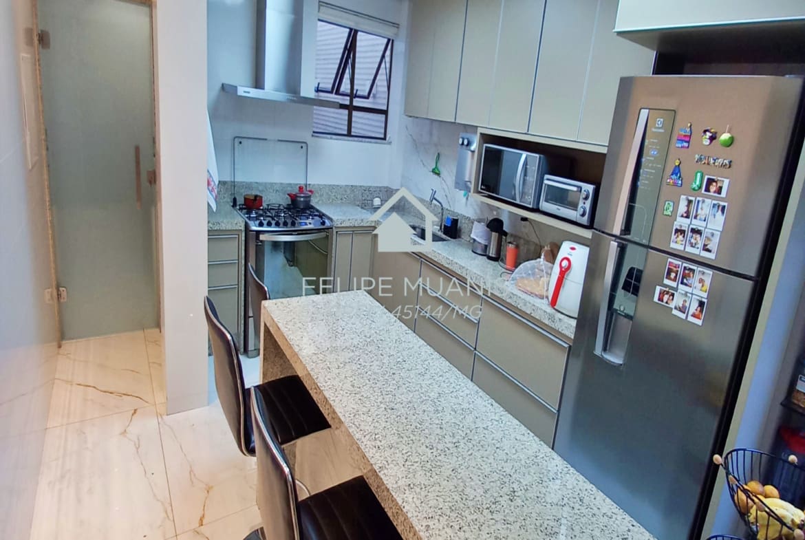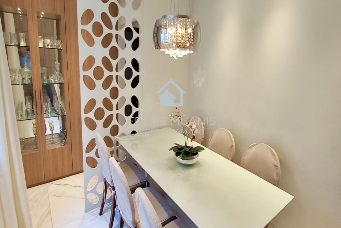 Os móveis planejados de alta qualidade trazem praticidade e beleza para o dia a dia, enquanto o projeto luminotécnico e a varanda com sol nascente criam um ambiente acolhedor e agradável.